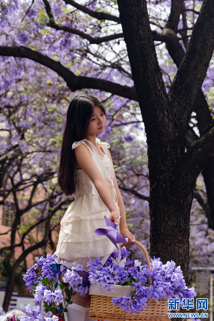 绽放的蓝花楹(5月1日摄)。新华网发(郑益 摄)