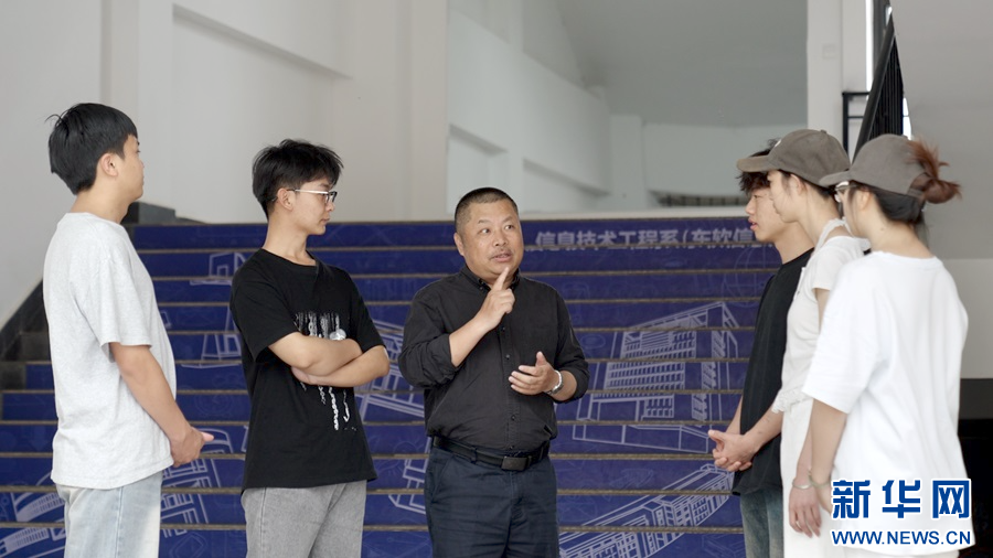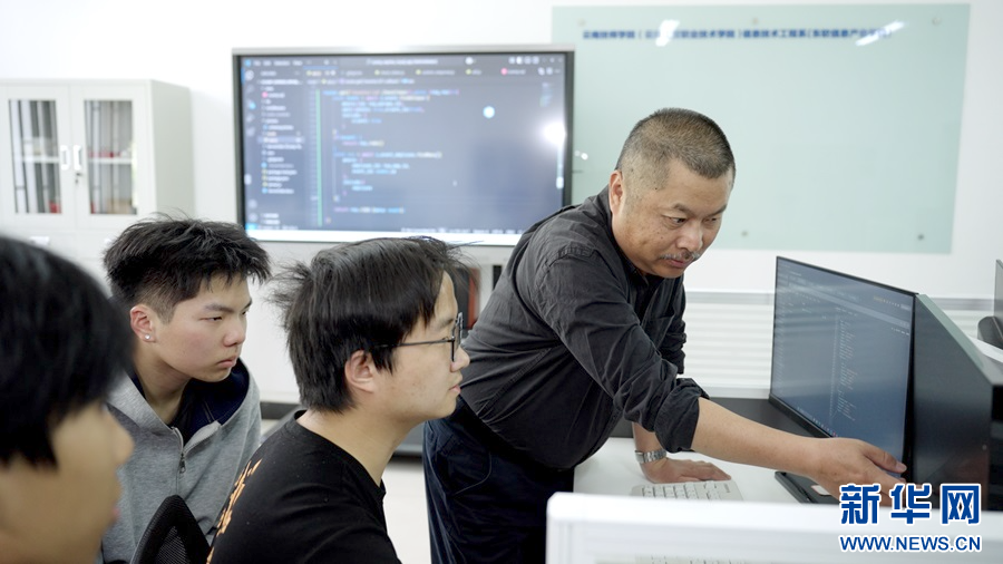 陶冠华指导学生熟悉课程内容(5月7日摄)。新华网发(李宗蓉 摄)