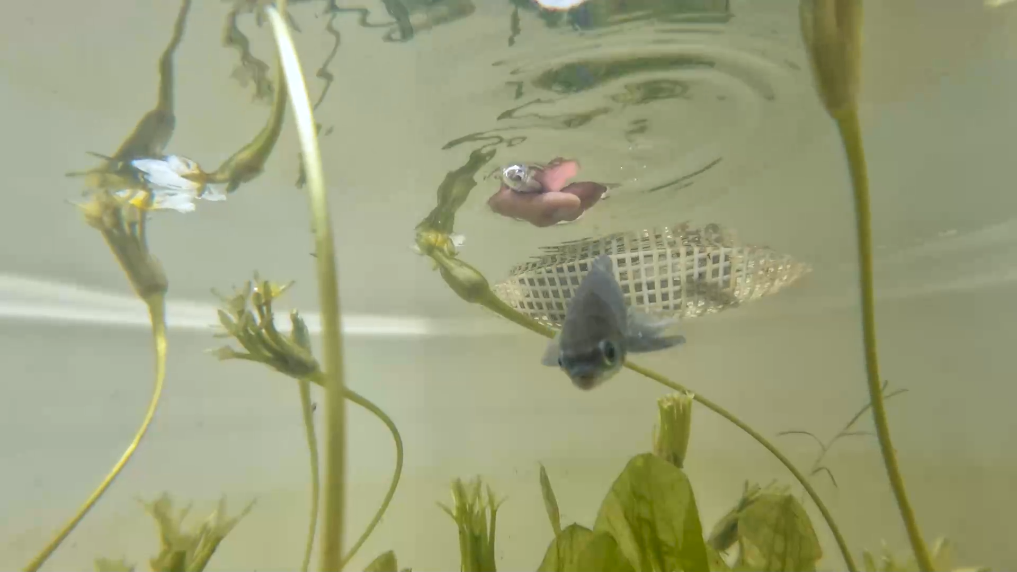 在右所镇永安海菜种植区,刚投放的鲢鱼游向海菜田深处,这是生物调控技术的新应用。