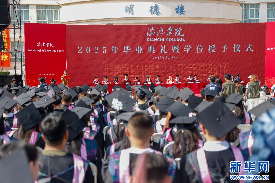 滇池学院举行2025届毕业生毕业典礼(6月12日摄)。新华网发(宋瑞成 摄)