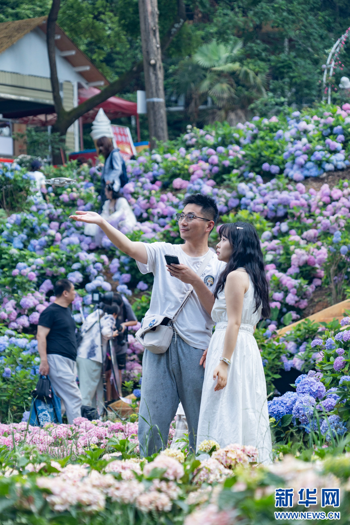 近日,云南省昆明市郊野公园内的绣球花进入盛花期,绣球花竞相绽放,为夏日增添了一抹清新浪漫。市民游客纷至沓来,或驻足赏花、或拍照留念,尽享自然之美。