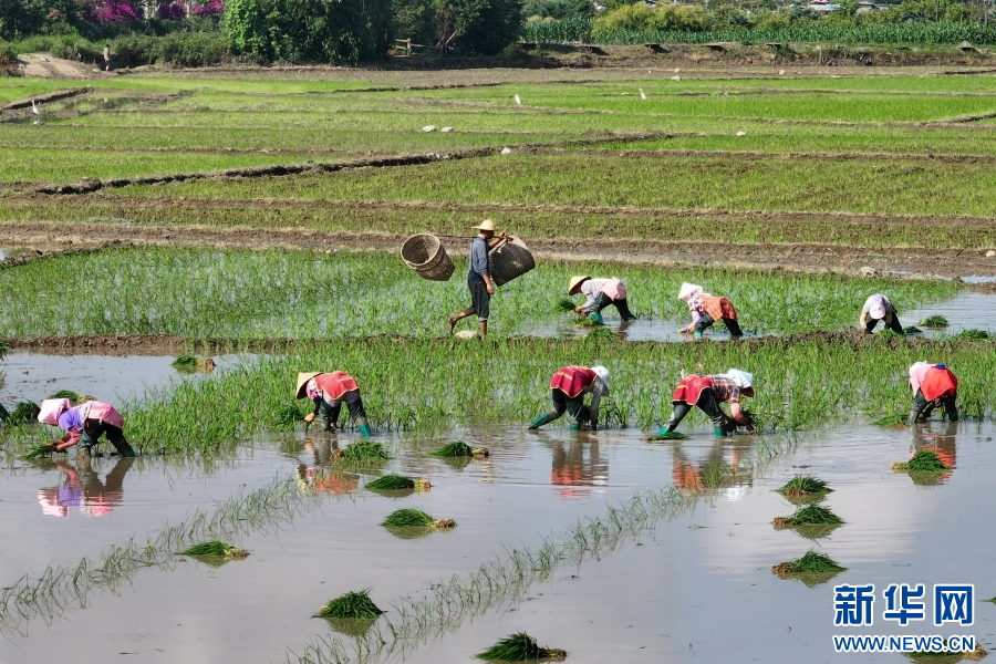 云南省腾冲市和顺镇,农人忙着插秧(6月15日摄)。新华网发(龚祖金 摄)
