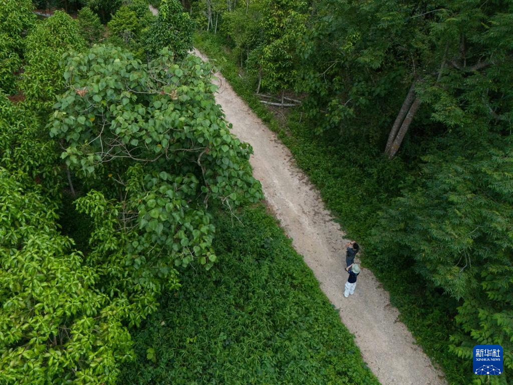 6月15日,工作人员在中国科学院西双版纳热带植物园开展鸟类调查监测(无人机照片)。新华社记者 高咏薇 摄