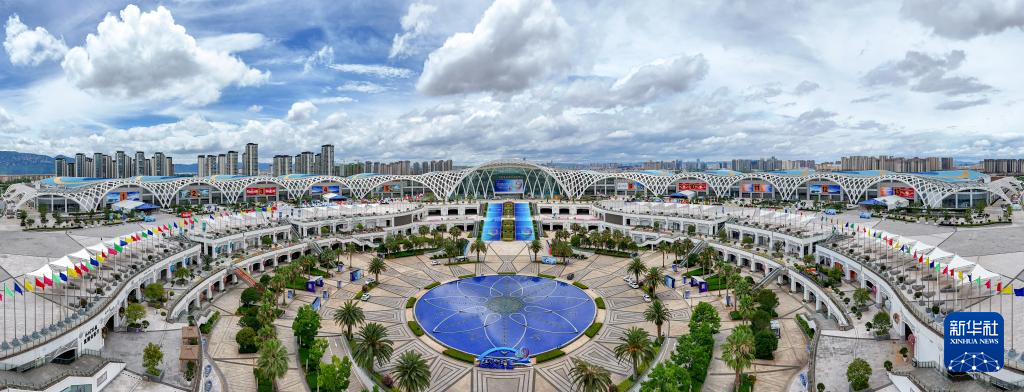 6月18日拍摄的第9届中国—南亚博览会举办地昆明滇池国际会展中心(无人机全景照片)。新华社发(彭奕凯摄)