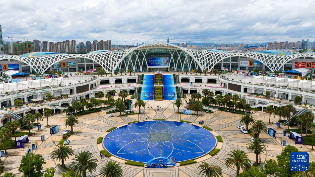 6月18日拍摄的第9届中国—南亚博览会举办地昆明滇池国际会展中心。(无人机照片 彭奕凯摄)