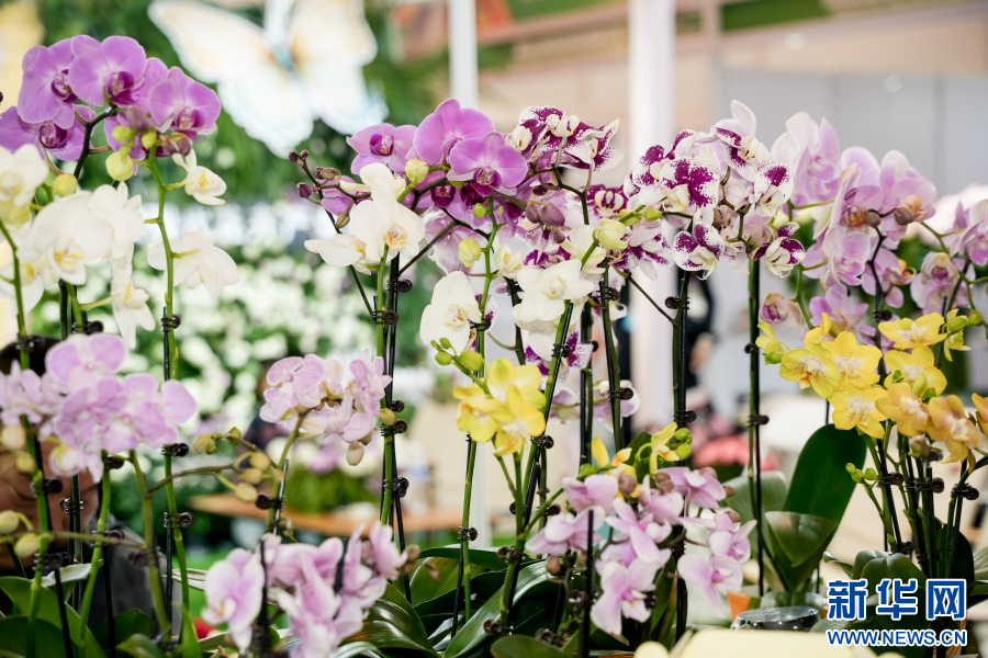 陈列的花卉展示(6月20日摄)。新华网发(周润元 摄)
