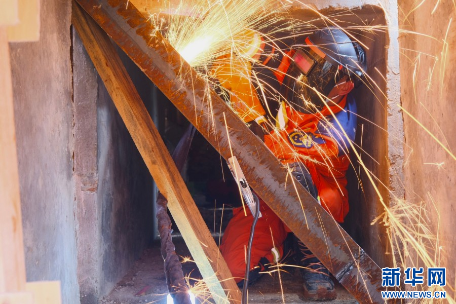 狭小空间破拆(摄于6月24日)。 新华网发(周新华 摄)