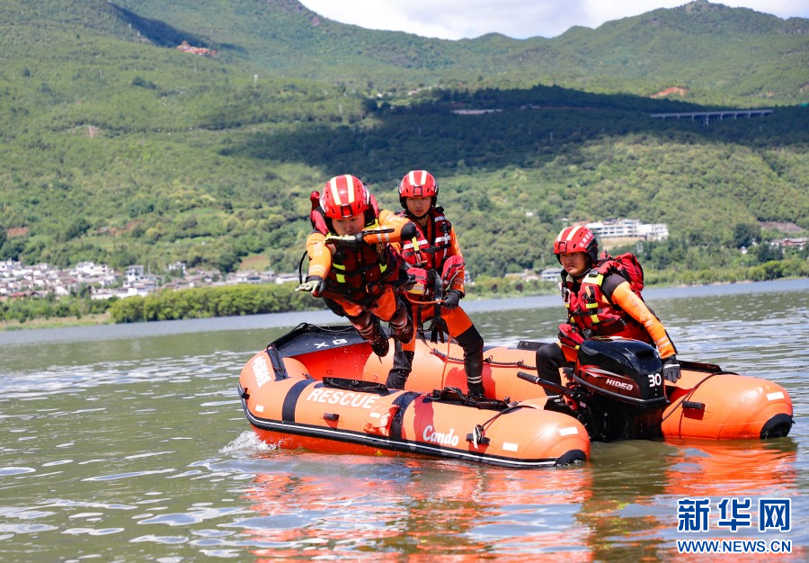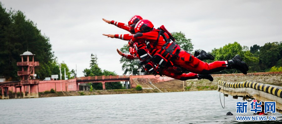 平跳式入水救援训练(摄于6月26日)。 新华网发(马开龙 摄)
