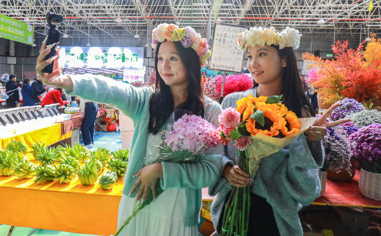 5月6日,人们在勐满镇曼烈村举行的中老边民“国际老庚大赶摆”活动上选购特色商品。(勐腊县委宣传部供图)