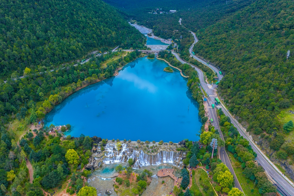航拍“丽江之约 世遗之夜”媒体智库沙龙举办地(9月8日摄)。新华网发(刘东 摄)