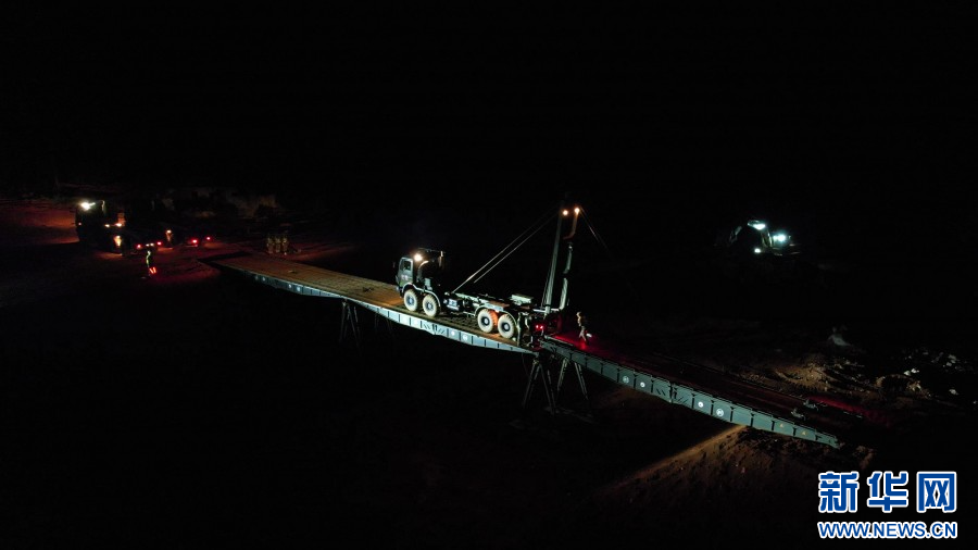 夜间桥梁架设(视频截图)。新华网发(武警第二机动总队某支队供图)