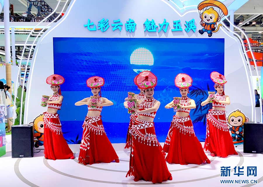 此外,云南展台还推出“七彩云南,魅力玉溪”品牌,将玉溪的户外运动、民族文化带到了展会现场。欢快的民族音乐、热情的花腰傣舞蹈以及棕扇舞表演、独具特色的文创产品等,吸引了嘉宾以及市民游客的关注,纷纷用手机定格精彩瞬间。