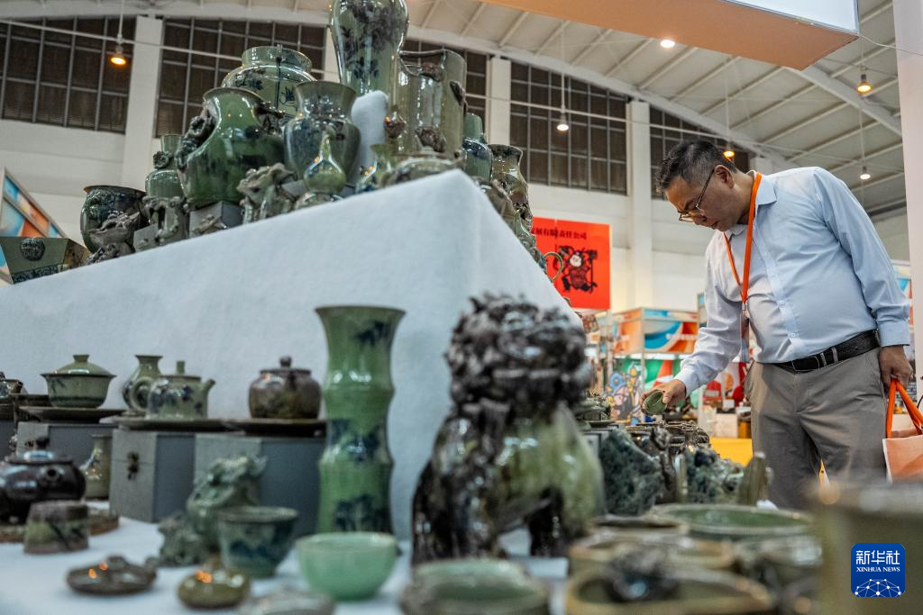 9月17日,嘉宾在创意云南文化产业博览会上选购。新华社记者 胡超 摄