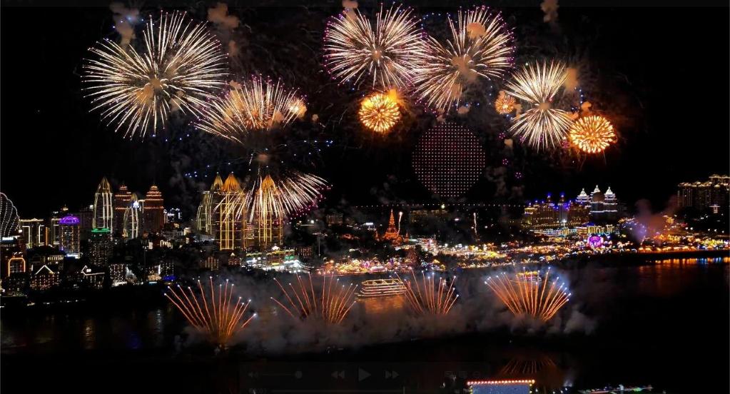 国庆期间,一场大型沉浸式音乐焰火秀在云南西双版纳州景洪市澜沧江畔上演。演出创新采用“水陆空三维联动”形式,将尖端科技与绚烂焰火深度融合,为观众打造了一场视听盛宴,为当地发展夜间经济增添新活力。