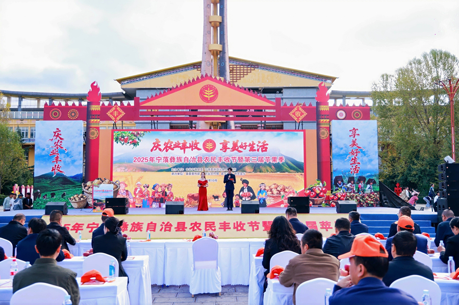 2025年宁蒗彝族自治县农民丰收节暨第三届苹果季开幕式现场(10月24日摄)。