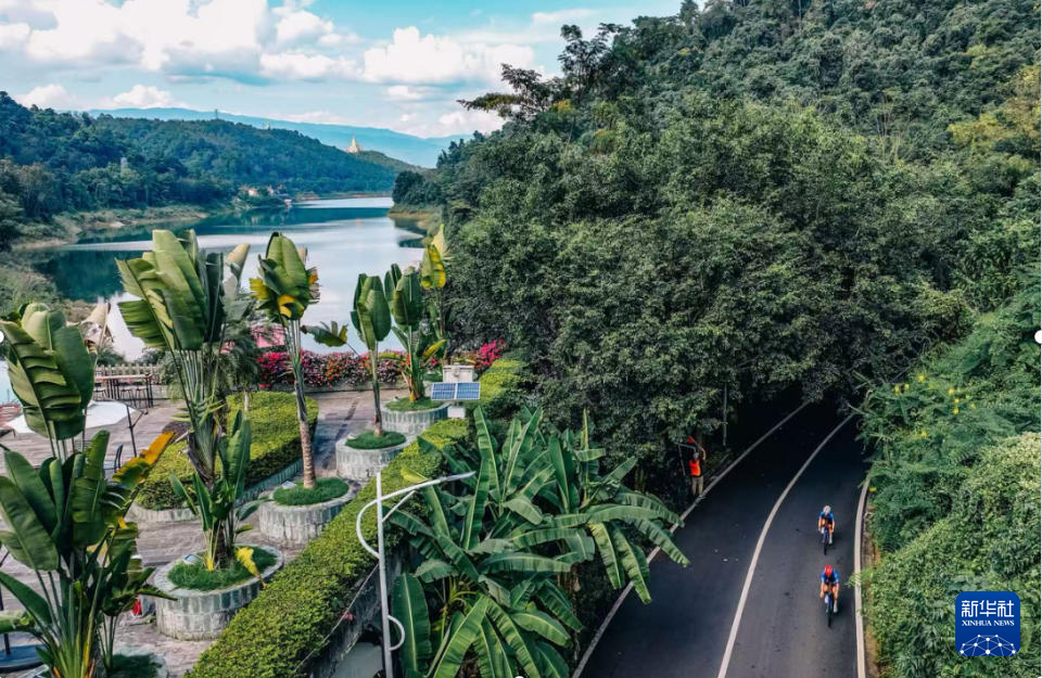 新华网昆明11月1日电(记者岳冉冉)10月31日,2025七彩云南格兰芬多自行车节双人计时赛在芒市孔雀湖畔上演首秀。
