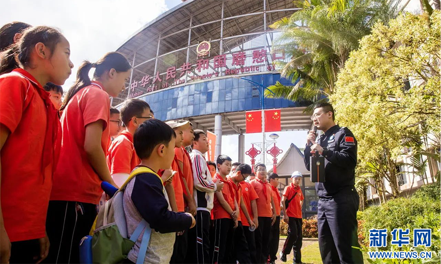 在磨憨出入境边防检查站开展爱国主义教育主题宣讲(资料图)。新华网发