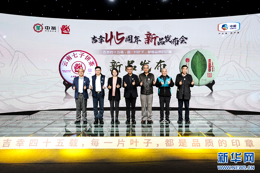 10日,吉幸普洱茶45周年庆典新品发布会在昆明举行,现场发布了两款纪念新品。