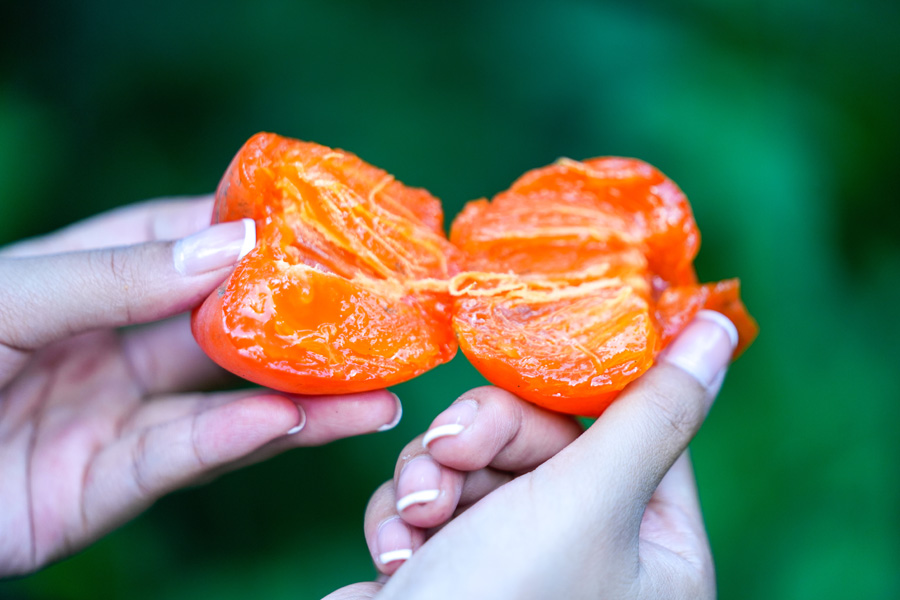 2025年7月31日,勐腊海关关员在磨憨铁路口岸对进口山竹进行监管。新华网发(周炜 摄)